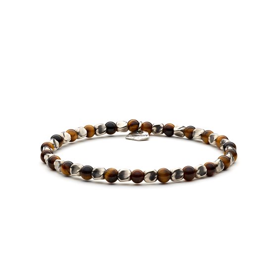 Bracciale in argento 925/°°° e occhio di tigre marrone. Le gemme si susseguono creando un perfetto ordine cromatico, reso originale unicamente dalle sfumature naturali della pietra. Tutti i gioielli della linea Speed sono identificati dalla targhetta Antracite in argento 925/°°°. Gli elementi vengono infilati in un filo elastico in silicone molto resistente. Creazione artigianale, interamente realizzata a mano, 100% Made in Italy.