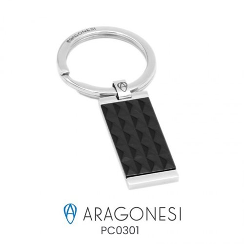 Portachiavi della collezione Museum, in acciaio 316L con inserti black. La lunghezza totale è di cm.6,80.