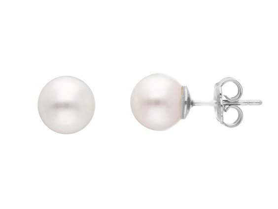 I classici orecchini a lobo in oro bianco con perle Fresh-Water diametro mm.8/8.5.