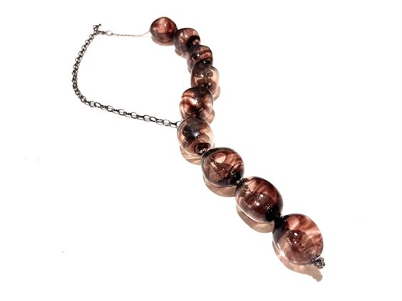 Collana Houdini asimmetrica, in vetro soffiato. Ogni singola perla è differente da un'altra nel medesimo colore e questo è parte della sua bellezza. Creata artigianalmente dalla designer Barbara Proverbio.