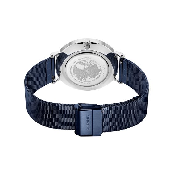 Ispirata al design danese, la COLLEZIONE CLASSIC presenta un orologio unico, creato per dare un tocco di stile al look quotidiano. La cassa in acciaio inox (316L), la finitura lucida, insieme al moderno cinturino in maglia Milanese blu, realizzano il classico look BERING. Il quadrante blu, con piccoli secondi, è protetto da un vetro zaffiro antigraffio. Garanzia 3 anni.