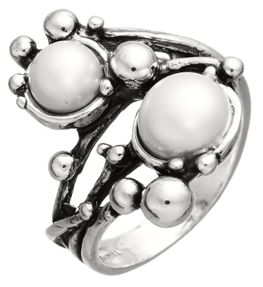 Anello Ad Astra. Una falce di Luna, un cielo notturno stellato, e ancora pianeti luminosi che sorgono all'orizzonte. La brillantezza delle perle naturali per un gioiello dal fascino unico. Realizzato a mano in azienda.