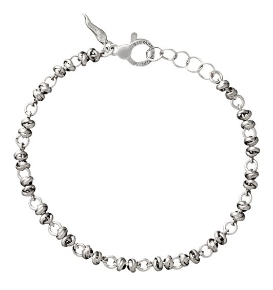 Bracciale Joy. Ritmo ed eleganza contemporanea, grazie al susseguirsi di coppie di maglie intrecciate, su una base di sezioni realizzate a mano in fusione a cera persa: una sequenza delicata e preziosa. Chiusura con moschettone con maglie di regolazione Questo bracciale in argento è realizzato completamente in azienda.
