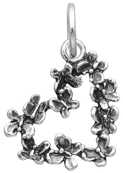 Charm Cuore Farfalle. Altezza cm.2,30 (esclusa maglina con logo cm.0,90).