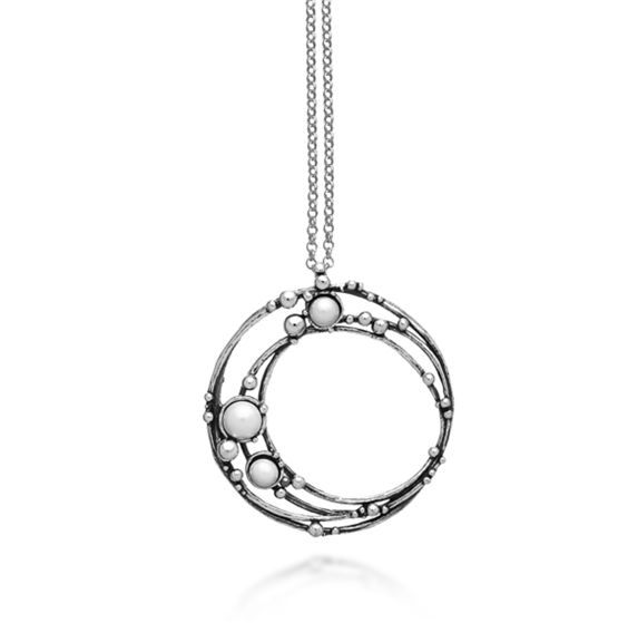 Collezione Ad Astra. Una falce di Luna, un cielo notturno stellato, e ancora pianeti luminosi che sorgono all'orizzonte. La brillantezza delle perle naturali per un gioiello dal fascino unico.