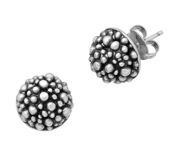 Orecchini Boule Perlage. Una vera dichiarazione di stile. Ispirati ai volumi della sfera, questi orecchini sono abbelliti da mille sferette lucidissime, regalando un indosso leggero e prezioso. Essi uniscono l'eleganza contemporanea alla grande tradizione della fusione a cera persa in argento. Vengono realizzati in azienda completamente a mano. Diametro mm.12.