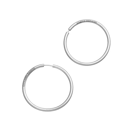 Orecchini Invisibili. Minimalismo contemporaneo in argento. Questi orecchini, dalla forma estremamente lineare, sono la creazione giusta per l'indosso multiplo e per accompagnare gioielli più vistosi. Realizzati in azienda. Il diametro è di mm.16.