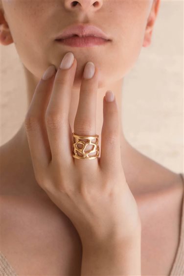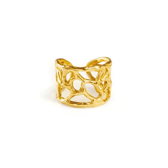 L'anello Africa racconta il fascino del continente nero. Le sue linee irregolari evocano la bellezza della natura e la libertà del viaggio. Un pezzo che parla di avventure e terre lontane. I gioielli di Giulia Barela sono in bronzo bagnato in oro 24 carati, realizzati a mano con l'antica tecnica della cera persa.