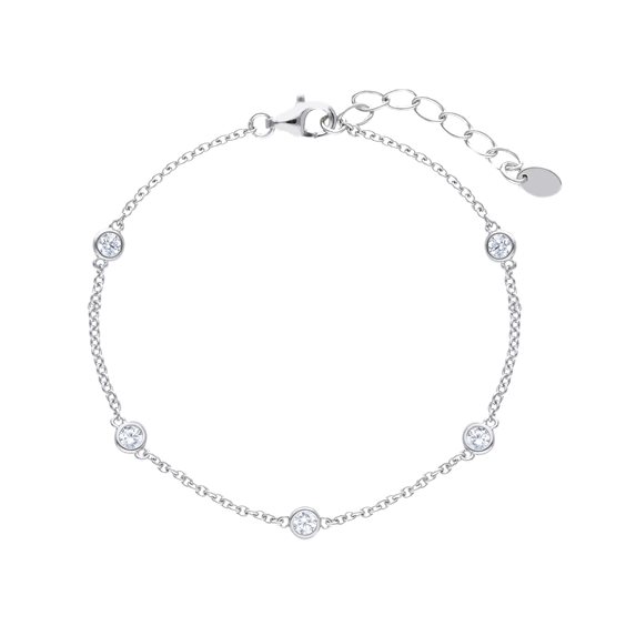 Bracciale con zirconie intercalari, la misura è regolabile grazie ad una serie di maglie d'accorciamento.