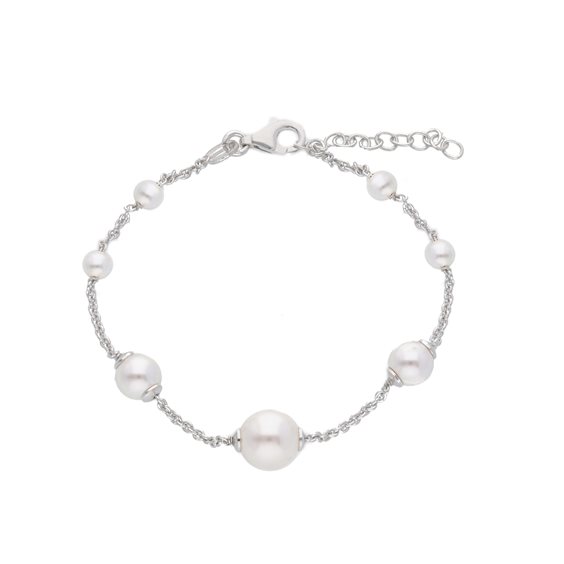 Bracciale con perle sintetiche intercalari. La misura è regolabile.