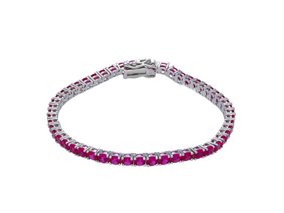 Bracciale tennis con cristalli rossi e chiusura a scatto. Sezione mm.3.