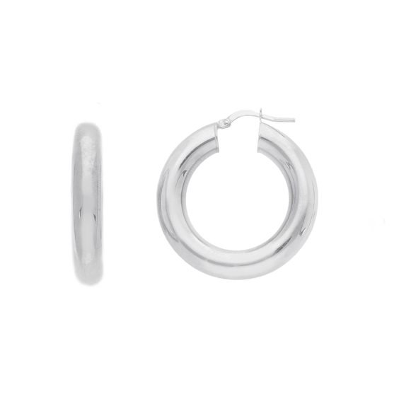 I classici orecchini a cerchio, con una canna di mm.6 e un diametro complessivo di mm.30.