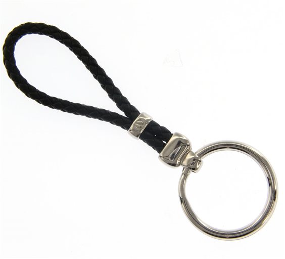 Portachiavi in cuoio intrecciato marrone scuro e maglia brisé.