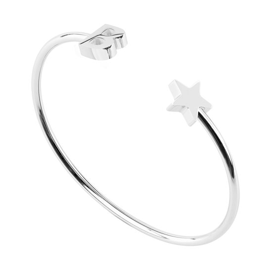 Bracciale rigido, aperto e snodabile, in acciaio lucido.