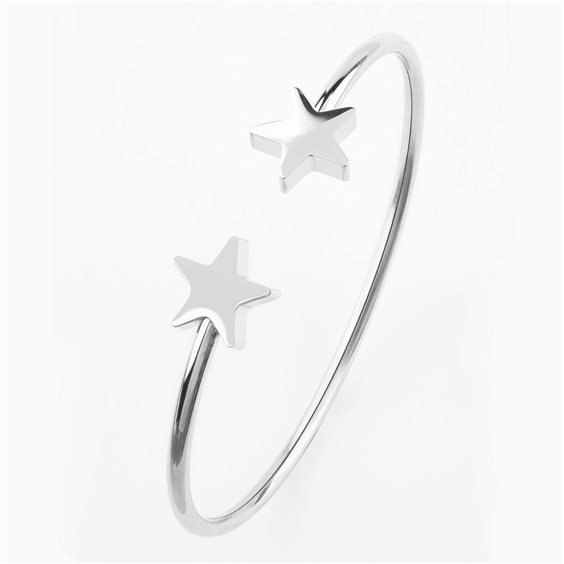 Bracciale rigido, aperto e snodabile, in acciaio lucido.