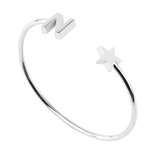 Bracciale rigido, aperto e snodabile, in acciaio lucido.