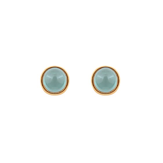 Orecchini in oro giallo con topazi azzurri taglio cabochon.