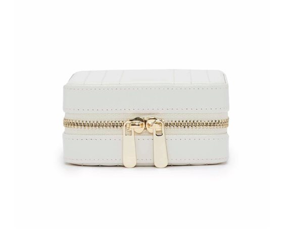 Raffinatezza e stile. Questo organizer della collezione Maria reinterpreta il concetto di classico; il design è semplice ed elegante, i soffici pellami presentano cuciture simmetriche e gli elementi in acciaio sono laminati oro giallo. L'astuccio contiene sette rotoli porta anelli, quattro scomparti aperti e, dietro lo specchio, tre agganci per le collane.