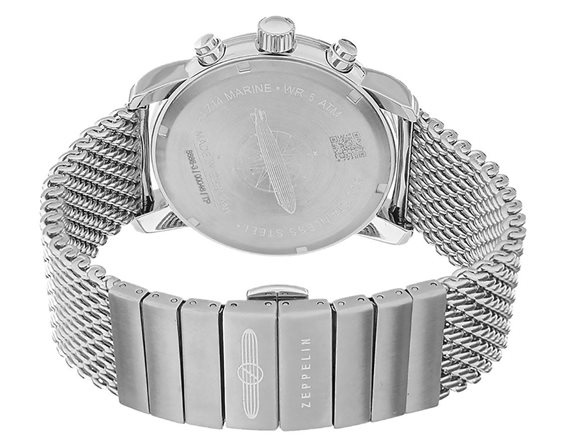 LZ14 Marine Chrono. Movimento al quarzo svizzero Ronda cal.5030.D, cassa in acciaio inox, vetro minerale K1, quadrante azzurro, cinturino in maglia milanese con fibbia déployante.